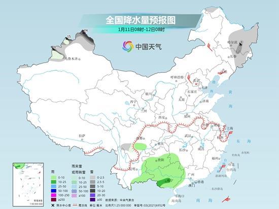 明天,新疆北部、川西高原南部等地部分地區(qū)有小到中雪,其中,新疆北疆東部局地有大雪。貴州、云南東部、湖南西南部、廣西等地部分地區(qū)有小到中雨。
