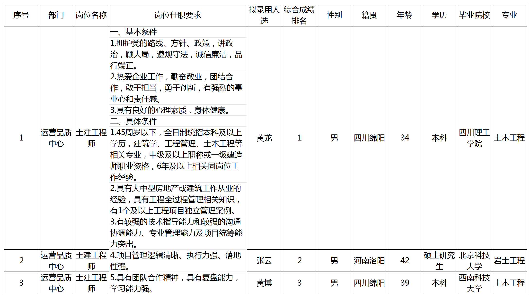 根據九洲千城置業(yè)有限責任公司發(fā)布的招聘公告及招聘相關規(guī)定,經筆試、面試、考察、體檢等程序,擬錄用黃龍等同志到九洲千城置業(yè)有限責任公司工作,現予以公示,具體情況如下: