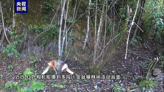 畫面中,川金絲猴有的一只單獨(dú)行動(dòng),大方和紅外相機(jī)“對(duì)視”,有的組隊(duì)從紅外相機(jī)前跑過,也有聚集“開會(huì)”的畫面。它們?cè)跇淞种凶杂勺栽诘赝嫠?,時(shí)而追逐打鬧、時(shí)而攀爬樹木、時(shí)而跳躍飛翔,猴子們非常聰明機(jī)靈,動(dòng)作敏捷靈活,在鏡頭里展現(xiàn)它們獨(dú)特的魅力。