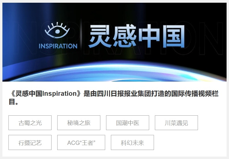 《靈感中國Inspiration》是由四川日報報業(yè)集團打造的國際傳播視頻欄目。
