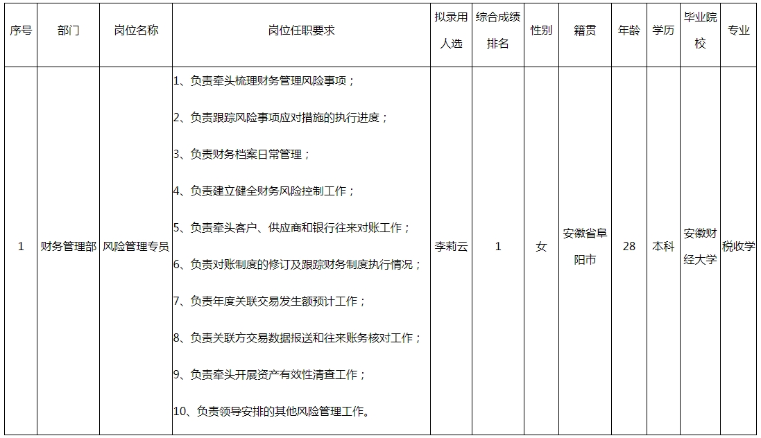 根據(jù)中科美菱低溫科技股份有限公司(以下簡(jiǎn)稱“中科美菱”)發(fā)布的招聘公告及招聘相關(guān)規(guī)定,經(jīng)面試、考察、體檢等程序,擬錄用李莉云同志到中科美菱工作,現(xiàn)予以公示,具體情況如下: