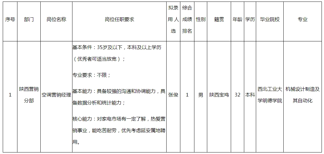 根據(jù)四川智易家網(wǎng)絡(luò)科技有限公司發(fā)布的招聘公告及招聘相關(guān)規(guī)定,經(jīng)面試、考察、體檢等程序,擬錄用張俊同志到四川智易家網(wǎng)絡(luò)科技有限公司工作,現(xiàn)予以公示,具體情況如下: