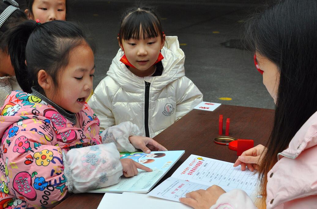 活動現(xiàn)場如同一個游樂場,孩子們在各個關(guān)卡間輪流穿梭,通過回答問題、解決難題等方式來獲得不同的星級。上午的語文樂園大闖關(guān)活動包括“朗讀課文我最行”、“認讀詞語我最棒”、“背誦篇目我最熟”、“表達交流我最溜”等四個關(guān)卡,每個關(guān)卡的內(nèi)容設(shè)計都涵蓋了本期的主要教學(xué)內(nèi)容。測評采用抽簽的方式,從拼音、生字、背誦、看圖說話等四大板塊,讓孩子們對所學(xué)知識加以運用,充分展示自我。