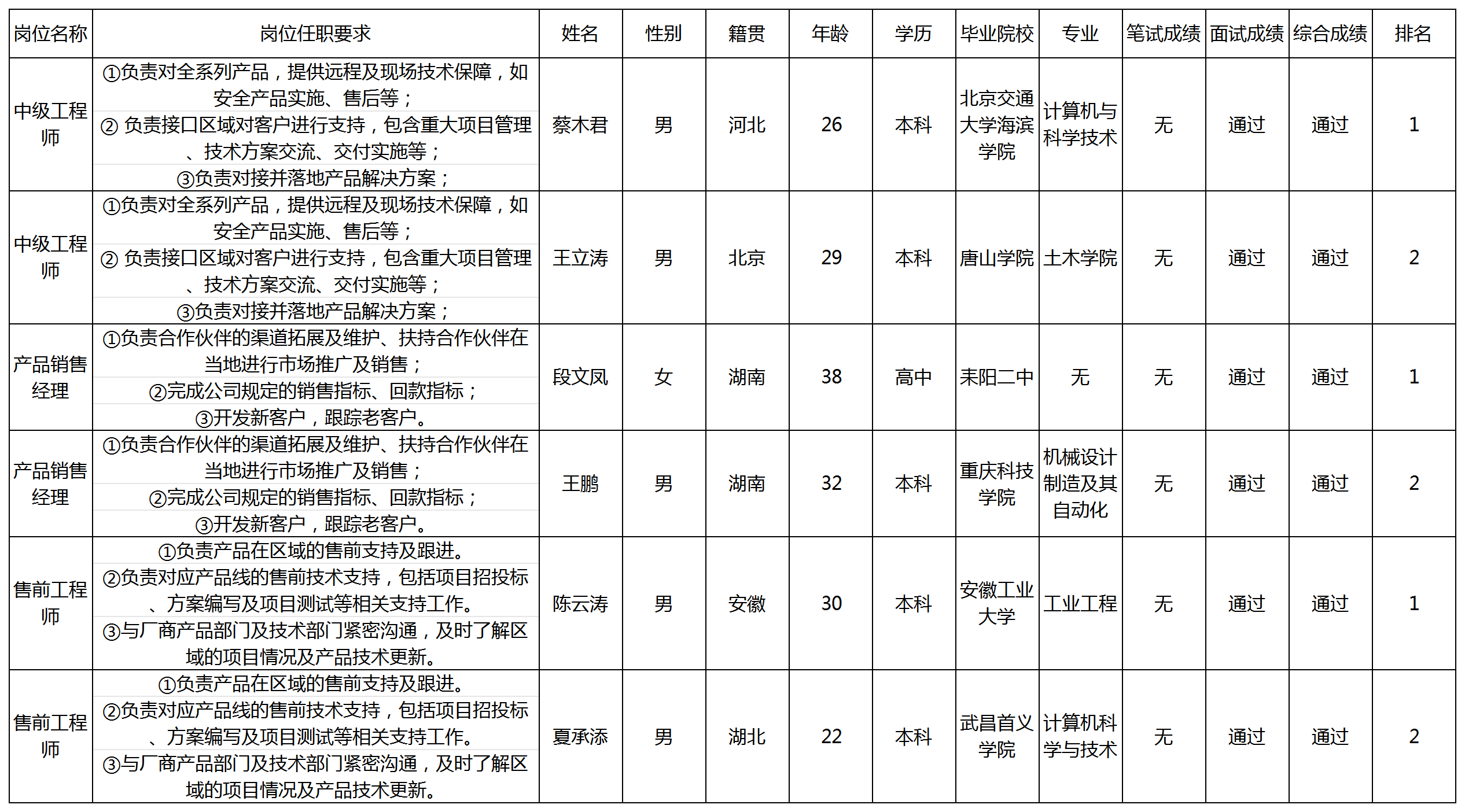 根據(jù)四川長(zhǎng)虹佳華信息產(chǎn)品有限責(zé)任公司發(fā)布的招聘公告及招聘相關(guān)規(guī)定,經(jīng)筆試、面試等程序,現(xiàn)將筆試(面試)成績(jī)予以公示。