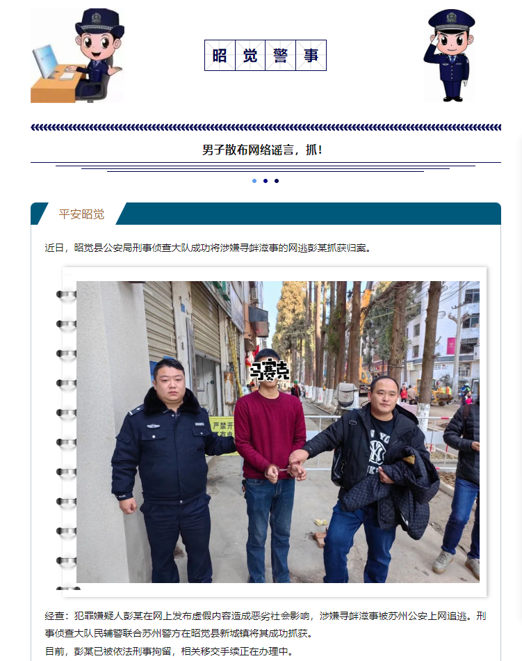 近日,涼山州昭覺縣公安局成功抓獲一名涉嫌網(wǎng)上尋釁滋事的在逃人員彭某,對其在網(wǎng)絡(luò)上發(fā)布虛假信息造謠滋事的犯罪行為給予重拳打擊。