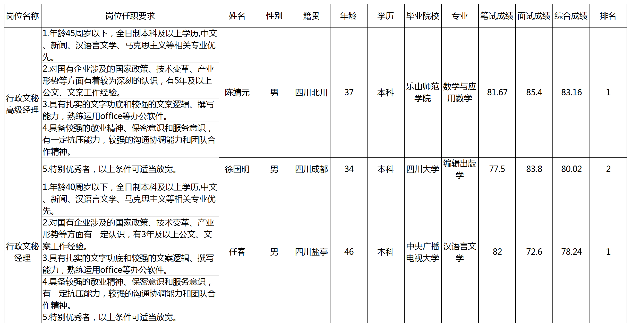 根據長虹控股集團發(fā)布的招聘公告及招聘相關規(guī)定,經筆試、面試等程序,現(xiàn)將筆試(面試)成績予以公示。