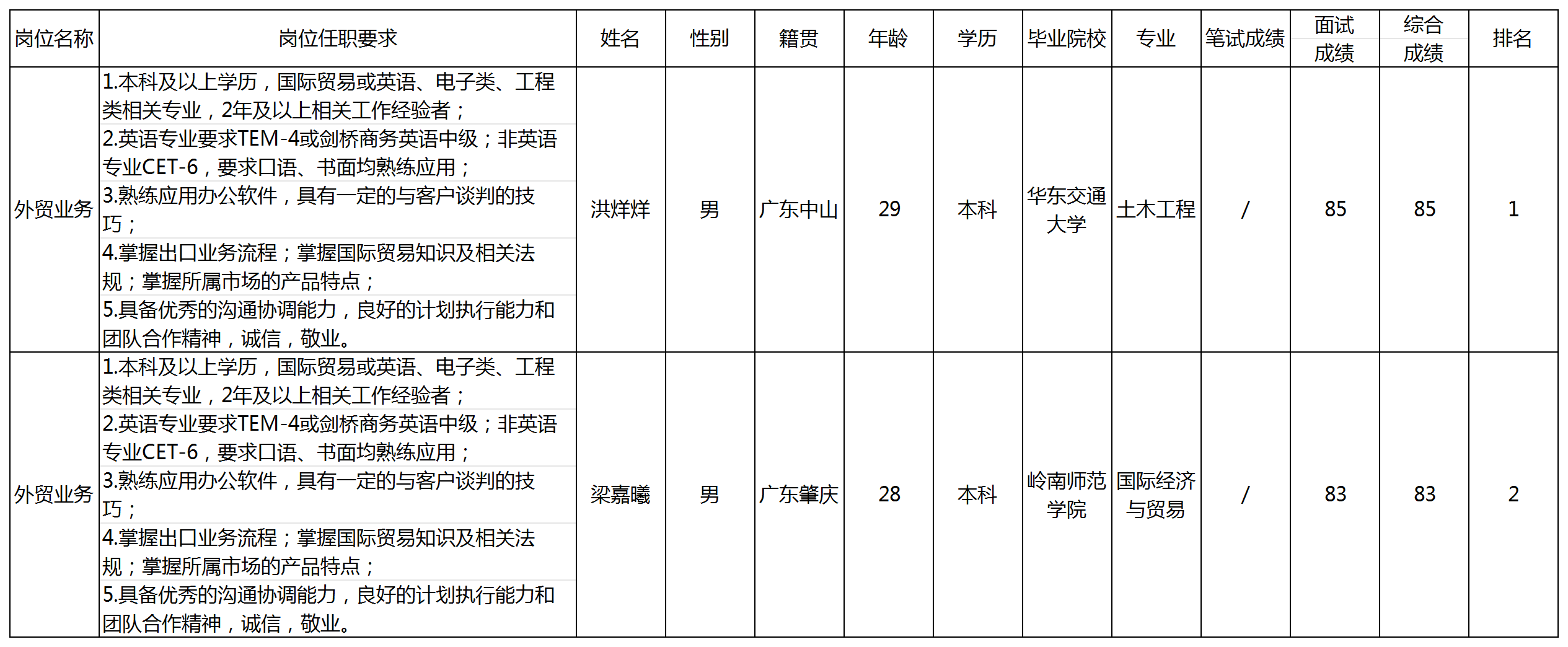 根據(jù)廣東長(zhǎng)虹電子有限公司發(fā)布的招聘公告及招聘相關(guān)規(guī)定,經(jīng)面試等程序,現(xiàn)將面試成績(jī)予以公示。