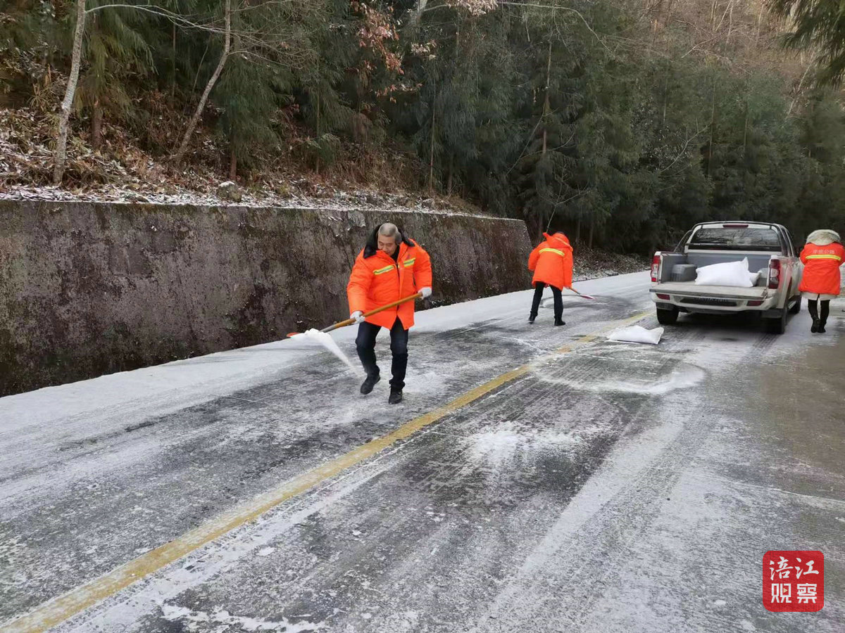 在擂鼓鎮(zhèn)擂禹路段,民警在重要路口設(shè)卡執(zhí)勤,引導(dǎo)群眾將車輛停放在山下的安全地點(diǎn)。在景家山路段,路面積雪較厚,民警在各路段有序開(kāi)展除雪防滑作業(yè),清掃路面積雪和冰塊。