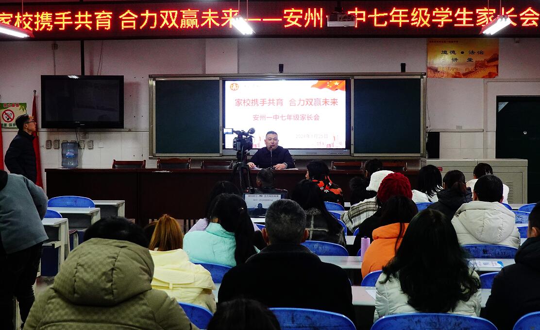 為了進(jìn)一步凝聚家校合作的力量,不斷提高家校合作的廣度和深度,使家長(zhǎng)全面了解學(xué)生在校學(xué)習(xí)與行為表現(xiàn),幫助家長(zhǎng)掌握科學(xué)的家庭教育方法,1月25日,安州區(qū)第一初級(jí)中學(xué)分年級(jí)組織召開(kāi)了以“家校攜手共育 合力雙贏未來(lái)”為主題的家長(zhǎng)會(huì)。該校領(lǐng)導(dǎo)、全體班主任、任課教師和家長(zhǎng)參會(huì),真誠(chéng)溝通,共話(huà)教育,助力成長(zhǎng)。