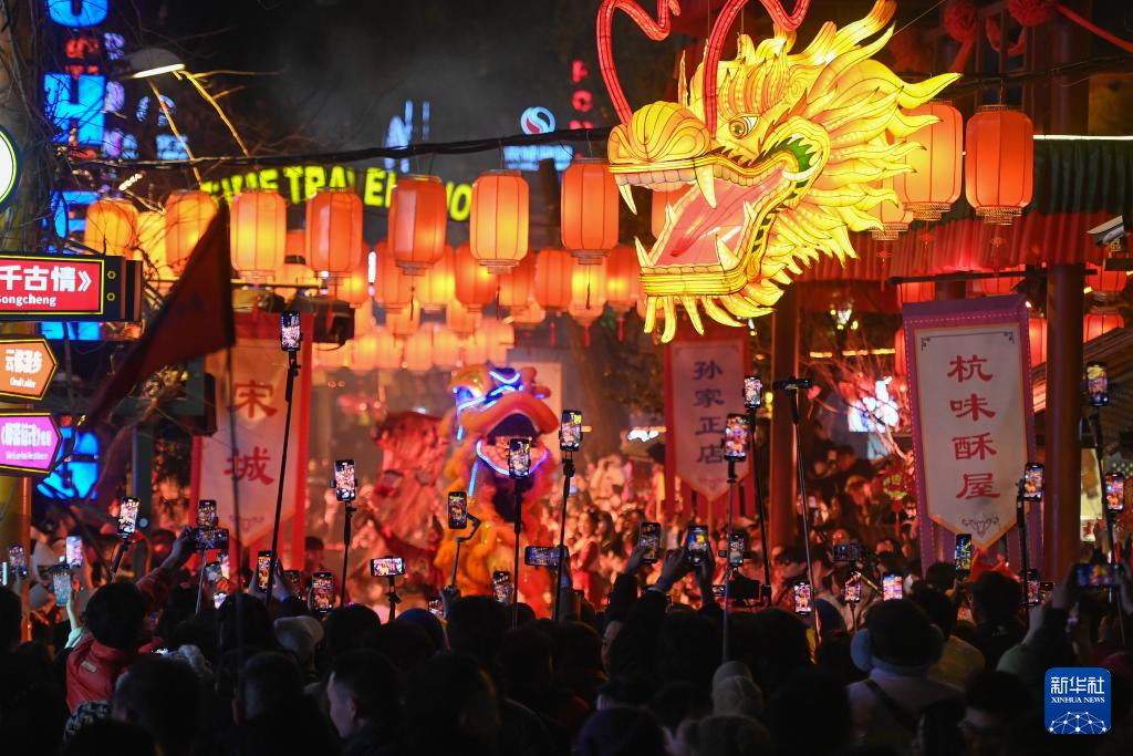 當日,浙江杭州宋城景區(qū)新春主題活動“狂歡中國年”啟幕,游園會、舞龍醒獅、打鐵花等演出活動亮相,為游客營造濃郁的中國年氛圍。