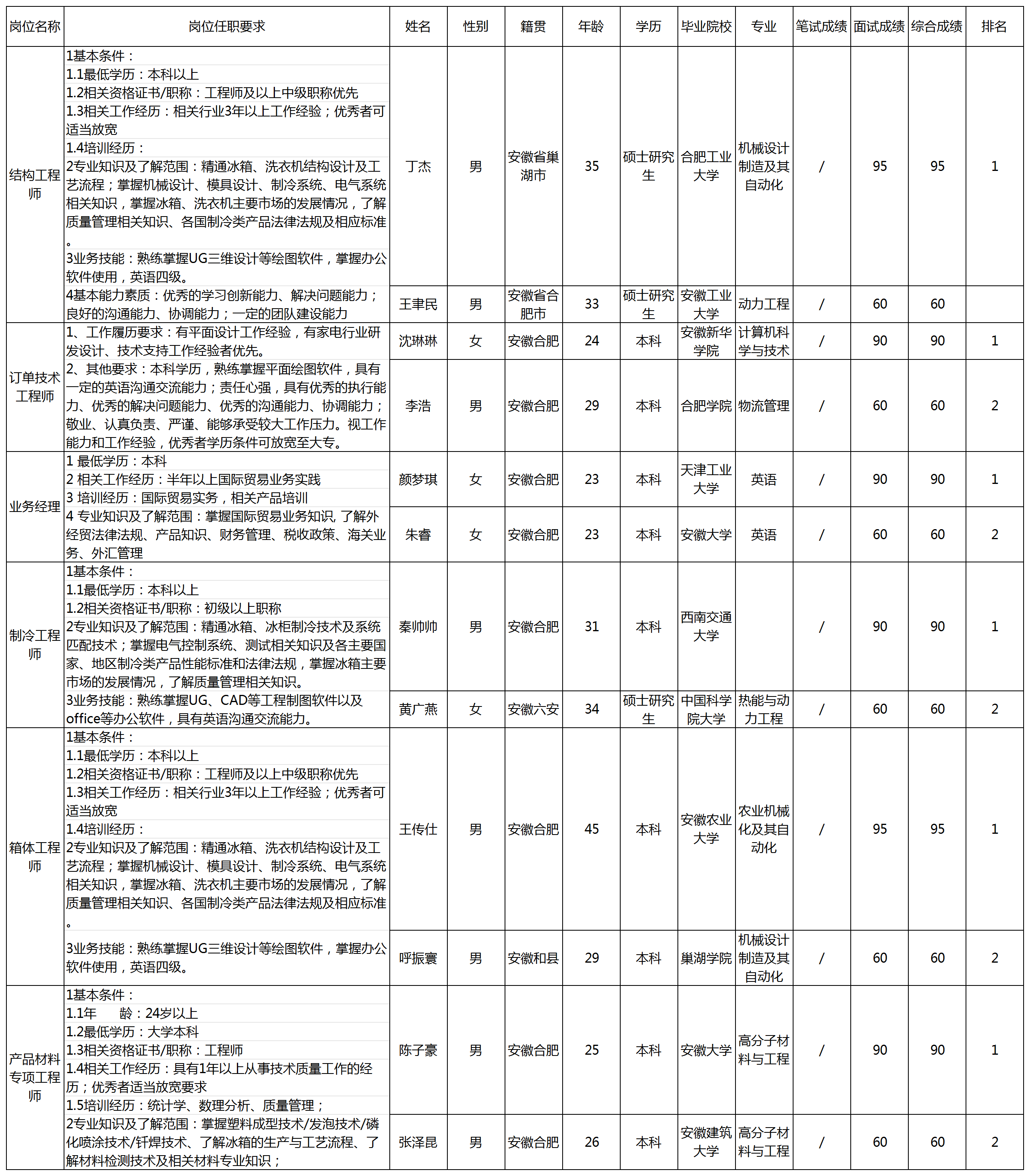 根據(jù)長虹美菱股份有限公司發(fā)布的招聘公告及招聘相關(guān)規(guī)定,經(jīng)筆試、面試等程序,現(xiàn)將筆試(面試)成績予以公示。