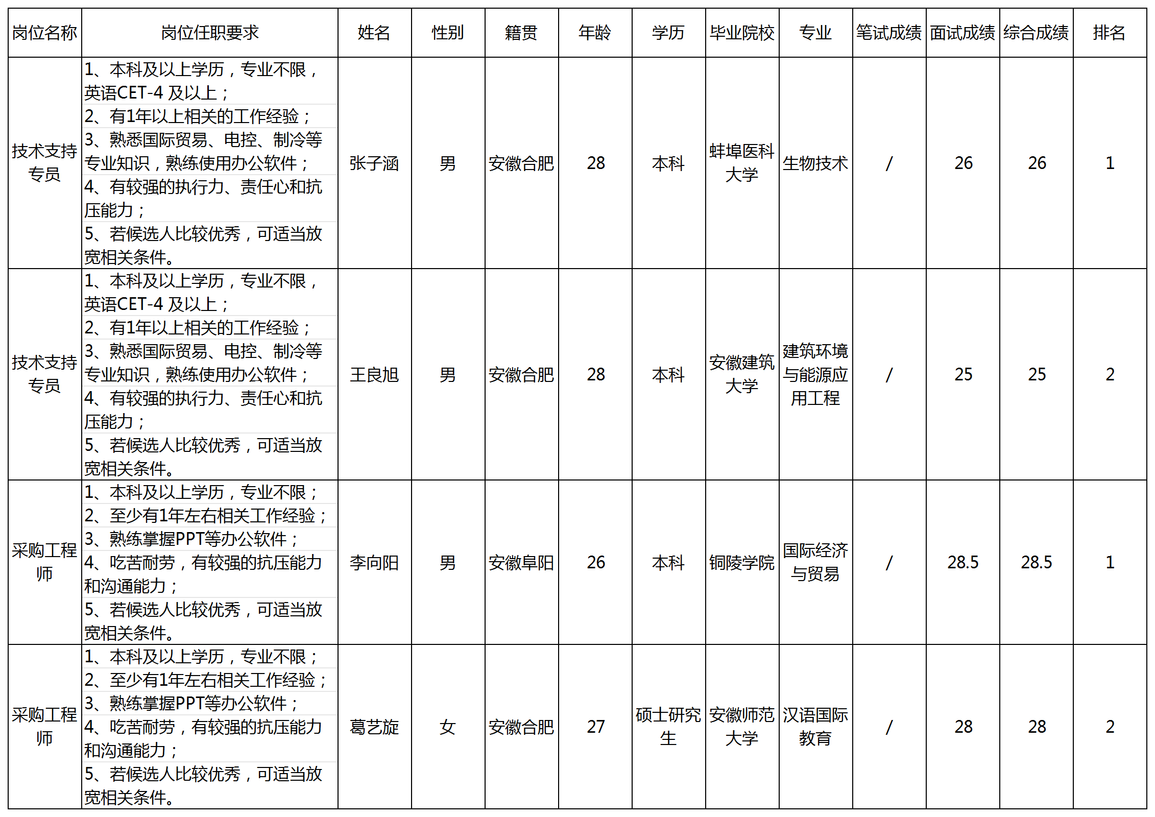 根據(jù)中科美菱低溫科技股份有限公司發(fā)布的招聘公告及招聘相關(guān)規(guī)定,經(jīng)面試等程序,現(xiàn)將面試成績予以公示。