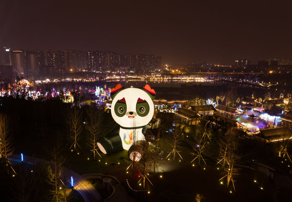 這是成都大運(yùn)會吉祥物“蓉寶”巨型燈組。