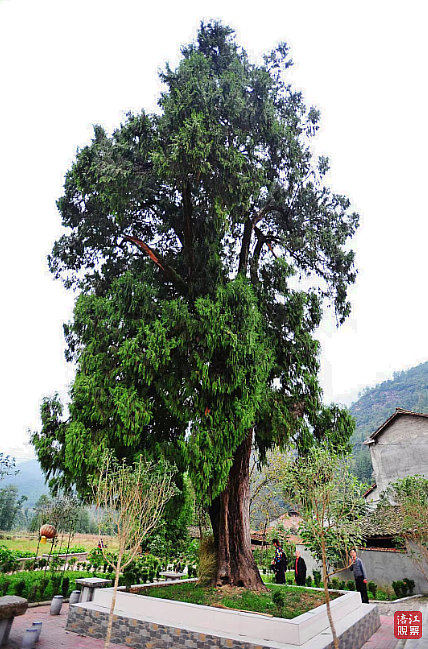后經(jīng)林業(yè)專家考證,鄉(xiāng)親們口中的這株“龍柏”,并非真正的龍柏樹。真正的龍柏是柏科圓柏屬的常綠喬木植物,也叫檜、檜柏,高可達(dá)20米,樹冠圓錐形,因枝條長大后會呈螺旋狀伸展,向上盤曲,好像盤龍姿態(tài),故又名龍柏。而河石村這株古柏雖也為柏、常綠喬木,但為普通柏樹,學(xué)名柏木,亦稱垂柏。2019年12月,這株古柏被列為江油市政府掛牌保護(hù)的古樹名木,樹齡超過520年,為一級保護(hù)古樹。