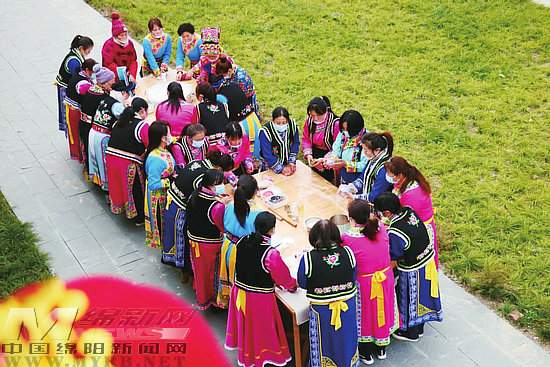 綿陽新聞網(wǎng)訊 近日,北川羌族自治縣婦聯(lián)、陳家壩鎮(zhèn)聯(lián)合開展“羌族鄉(xiāng)村過年味花樣美食迎龍年”返鄉(xiāng)女性農(nóng)民工關(guān)愛慰問活動(dòng),30多名返鄉(xiāng)婦女身穿羌族服飾歡聚在一起,用面粉和五顏六色的果粉做成帶有“龍”元素的藝術(shù)饅頭,迎接龍年新春的到來。