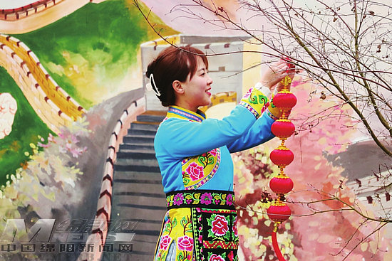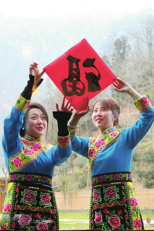 在活動(dòng)現(xiàn)場,兩名書法老師寫“福”添彩,他們把對返鄉(xiāng)姐妹的祝福寫進(jìn)“福”字里。羌鄉(xiāng)姑娘親手剪窗花,在屋檐下高掛小燈籠,祝愿龍年紅紅火火。