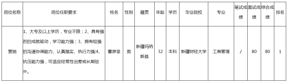 根據(jù)四川長虹網(wǎng)絡(luò)科技有限責(zé)任公司發(fā)布的招聘公告及招聘相關(guān)規(guī)定,經(jīng)筆試、面試等程序,現(xiàn)將筆試(面試)成績予以公示。