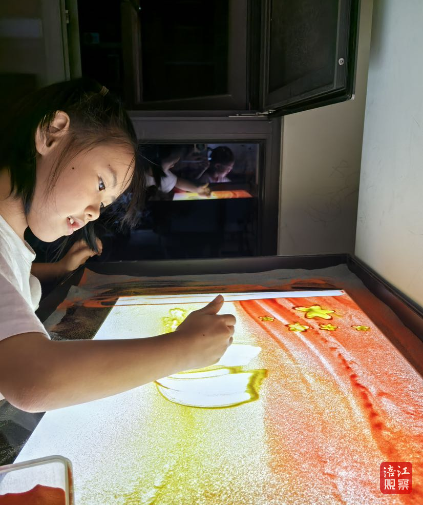 在綿陽(yáng)城區(qū),一群小朋友在沙畫(huà)老師的指導(dǎo)下?lián)P沙為畫(huà),或是日出東方,或是紅旗飄飄……小小少年童心盎然、紅心閃耀,用沙畫(huà)祝福祖國(guó)?! ?/p>
