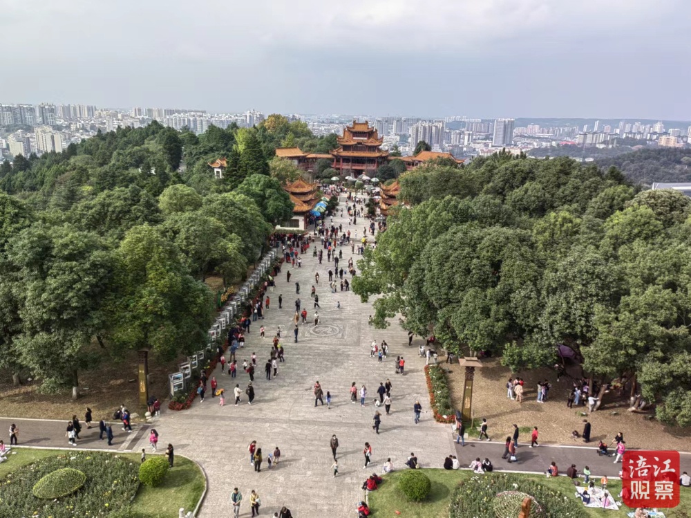 國慶假期第二天,富樂山景區(qū)迎來了游客小高峰,公園內(nèi)的秋色愈加濃烈,吸引著無數(shù)游客登高望遠(yuǎn)。