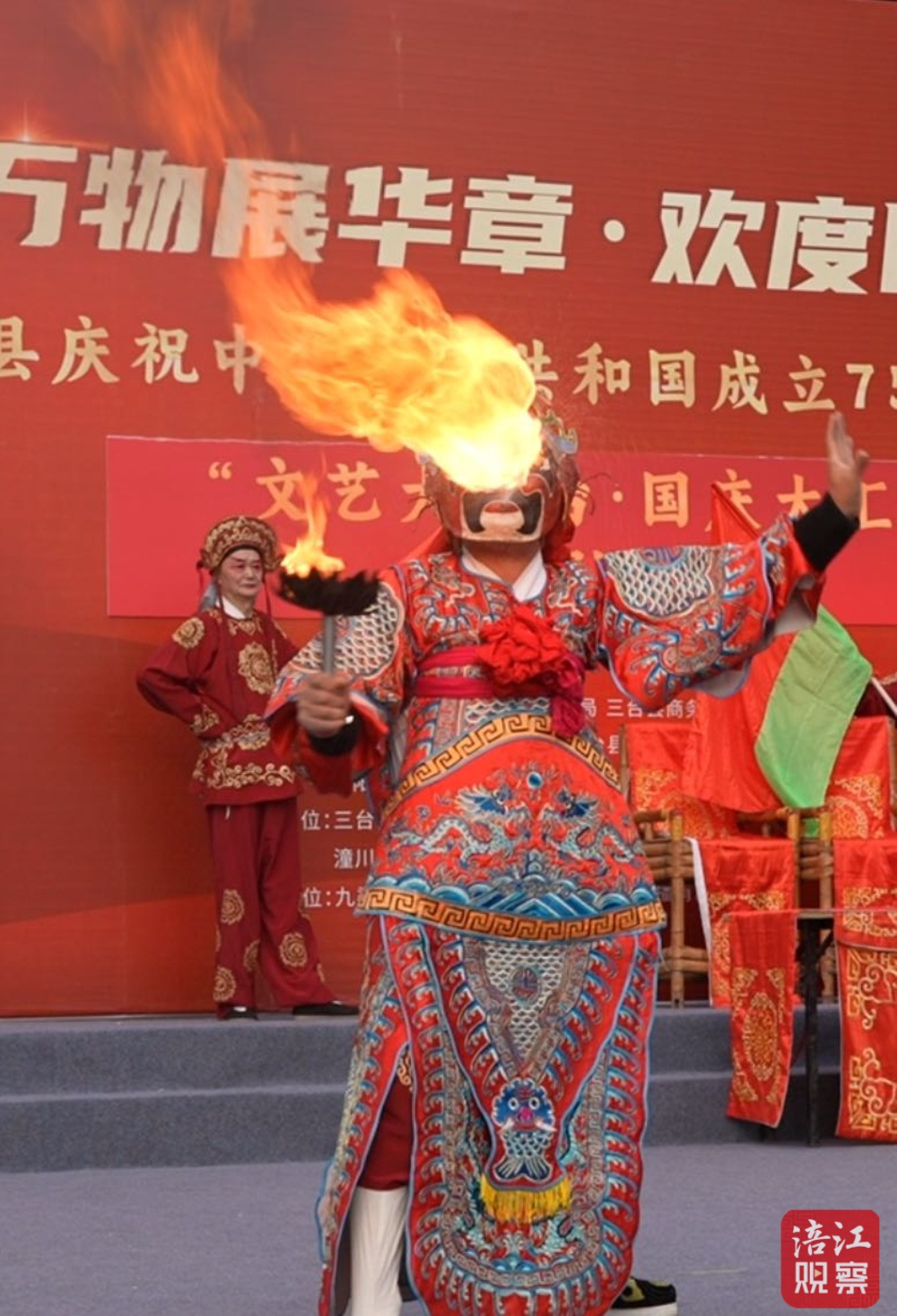 好戲不斷,川劇深邃的戲腔悠然回蕩,吸引了上千戲迷和聽眾?!赌鹿鹩鞄洝?、川劇吐火、川劇旦角水袖表演等經(jīng)典戲曲劇目和川劇絕技表演,為觀眾帶來了一場視覺與聽覺的文化盛宴,領(lǐng)略了川劇獨(dú)有的藝術(shù)魅力與深厚底蘊(yùn)。