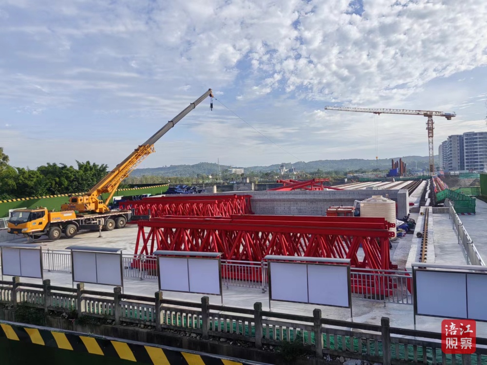 10月1日上午,記者在安州區(qū)調(diào)元大橋項(xiàng)目建設(shè)現(xiàn)場(chǎng)看到,一座橫跨安昌河兩岸的大橋已初見雛形,塔吊高高舉起巨臂,精準(zhǔn)地將一塊塊巨大的構(gòu)件吊裝到位,工人們正在進(jìn)行鋼箱梁等施工。