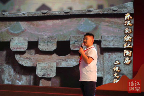 活動中,小小講解員成為當晚最大的亮點。他們站在大屏幕前,用稚嫩但自信的聲音,將10余件文物的背后故事娓娓道來,從元代的青花瓷到明代的蟾銅熏爐,從唐朝的葡萄紋銅鏡到東漢的紅陶舞俑、馬猴搖錢樹,每一件文物都蘊含著深厚的文化底蘊。