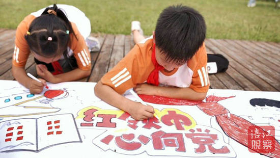 當?shù)孛袼捱€組織小朋友們制作了一把長達10米的漆扇。在漆扇畫卷上,從壯麗的山河到現(xiàn)代的科技,孩子們用五彩斑斕的畫筆描繪出對祖國的美好祝愿。