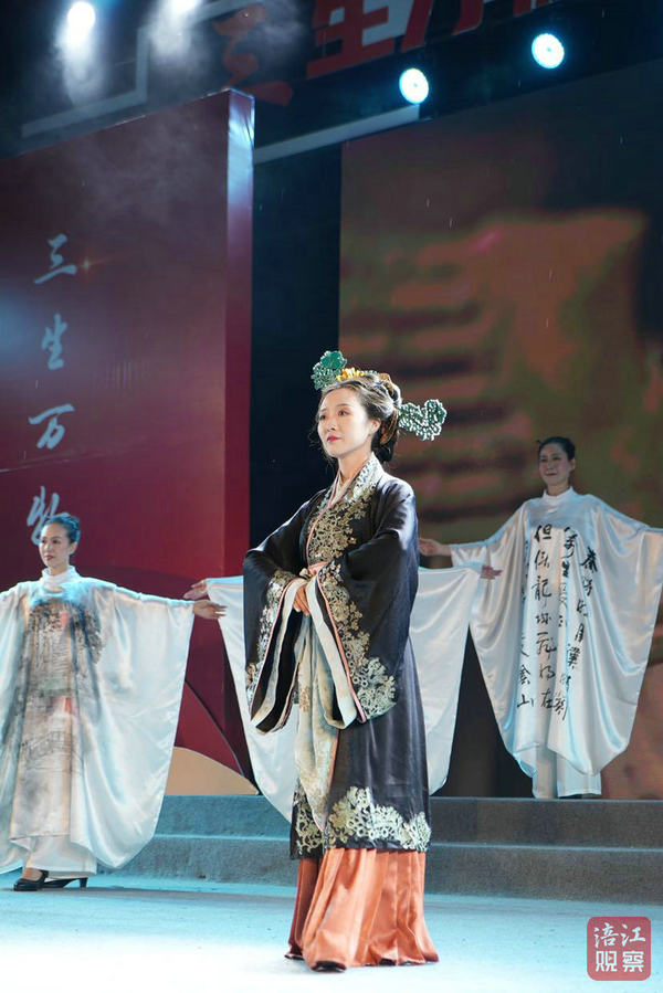 除了文物的展示,活動現(xiàn)場還融入了豐富多彩的文藝節(jié)目。川劇變臉《文物與非遺》把三臺文物元素與傳統(tǒng)文化融合,表演秀《時光織錦·漢韻流芳》把三臺文物元素穿在了身上,還有歌曲《梓州韻》、箏與舞《青花瓷》等,表演者通過各種藝術形式,將三臺的歷史韻味,文物的獨特魅力展現(xiàn)得淋漓盡致。
