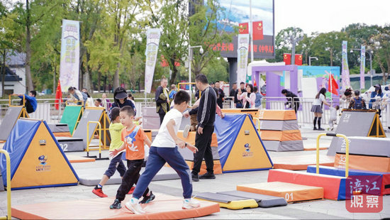 游客馬先生告訴記者:“平時孩子上學、大人工作的壓力都比較大,運動是很好的調節(jié)方式,這里的小游戲真的很解壓。”