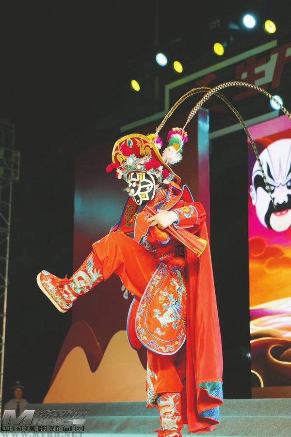 潼川古城里的川劇表演(記者 李春梅 攝)
