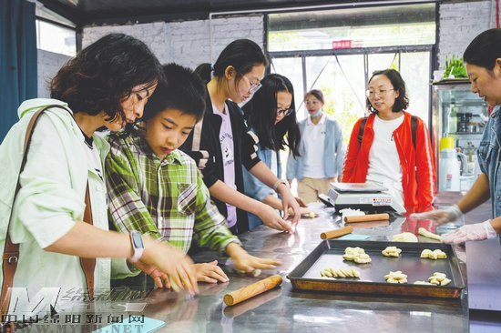 游客在秀水鎮(zhèn)鄉(xiāng)村印象農旅基地體驗面包制作