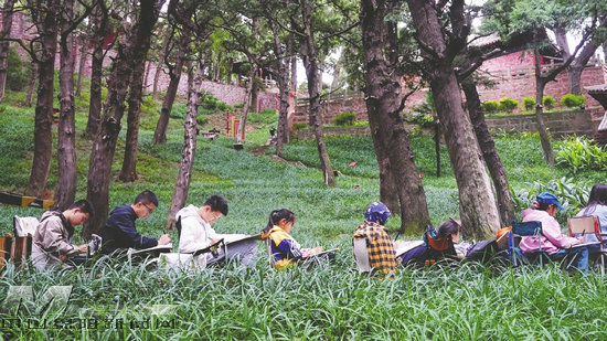 不僅如此,古柏林里手持畫筆的學生,精心挑選角度,將古樹的韻味定格在畫布之上。“這次來古柏林寫生,用畫筆描繪千年古樹,感受他們的一枝一葉,就像跟他們對話一樣,這里空氣清新,環(huán)境優(yōu)美,讓我能靜下心來感受生命的奇妙和自然的美好。”正在畫畫的路竣博說。