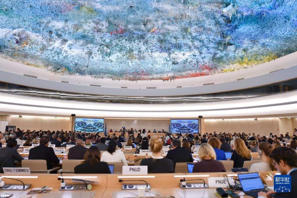 這是10月9日在瑞士日內(nèi)瓦拍攝的聯(lián)合國人權(quán)理事會第57屆會議現(xiàn)場。新華社記者 連漪 攝