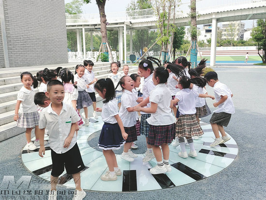 綿陽高新區(qū)創(chuàng)新實驗小學廣場上,孩子們在互動鋼琴鍵盤上玩耍。