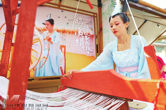 9月28日上午10時(shí),身著漢服的西安市民李夢(mèng)齊架起“長槍短炮”,圍著鹽亭非遺展館門前的絲綢織布機(jī)看了又看、拍了又拍,定格點(diǎn)點(diǎn)滴滴,“我非常喜歡這類手工技藝,這次活動(dòng)讓我充分感受到了絲綢之源的風(fēng)土人情,有機(jī)會(huì)一定去鹽亭走走,更多地了解嫘祖故里。”