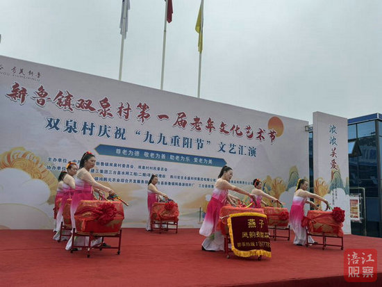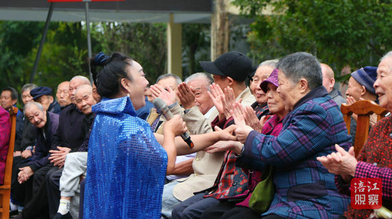 村民張曉紅說:“今天重陽節(jié),我們?yōu)榇迳系睦夏昱笥褞砹宋乃嚬?jié)目,感覺大家都非常開心。”