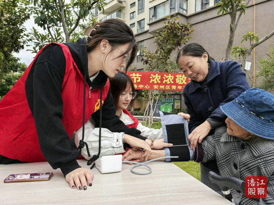 中壩街道銀河社區(qū)攜手江油九〇三醫(yī)院,開展“九九重陽節(jié) 濃濃敬老情”健康義診活動(dòng),為老人們提供健康咨詢,免費(fèi)測(cè)血糖、血壓,對(duì)老年病患者提供飲食、保健、用藥等全面的健康指導(dǎo)。