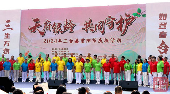 ?。保霸拢保叭障挛纾?ldquo;天府銀齡 共同守護(hù)”為主題的重陽慶典在三臺(tái)縣潼川古城梓州渡廣場(chǎng)舉行。