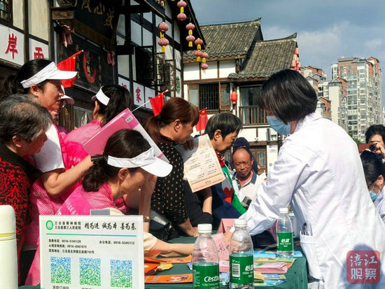 活動(dòng)現(xiàn)場(chǎng)一派歡聲笑語,歌舞、雜技、川劇……舞臺(tái)上,一個(gè)個(gè)老百姓喜聞樂見的節(jié)目輪番上演;一邊的健康體檢區(qū),免費(fèi)為老年人測(cè)量血壓、健康問診。