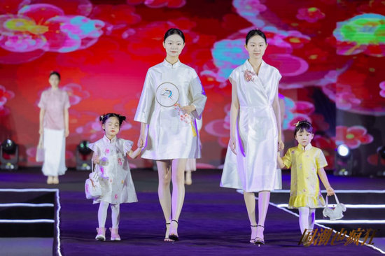 開幕式現場,一曲潛江民歌《催咚催》喜迎八方貴客,拉開了活動序幕;行云流水、剛柔并濟的武當武術迎來陣陣喝彩。湖北非遺時裝秀是此次活動的一大亮點,精選省內“挑補織繡”類非遺服飾精品60套,以模特T臺走秀的方式展示非遺精湛技藝與潮流設計的巧妙融合,由傳承人和紡大非遺團隊師生一起將荊楚紡織非遺元素與國際時尚設計趨勢結合、全手工繡制而成;涵蓋了漢繡、紅安繡活、英山纏花、大冶刺繡、荊州民間刺繡、土家織錦“西蘭卡普”、堂紡疊繡等湖北非遺代表性項目。整場秀以女裝為主,搭配了男裝和童裝的主題系列設計,是荊楚非遺走向市場,走進當代生活的生動實踐。