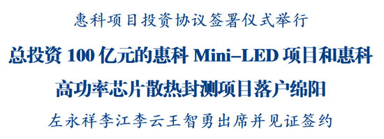 儀式上,副市長鄧輝介紹協(xié)議有關(guān)情況。涪城區(qū)與惠科股份有限公司簽署《惠科Mini-LED項(xiàng)目投資協(xié)議》《惠科高功率芯片散熱封測項(xiàng)目投資協(xié)議》。