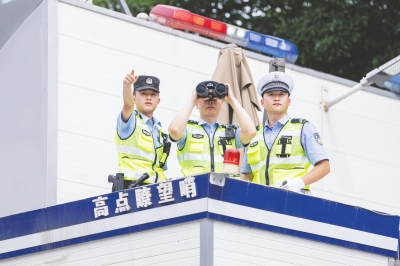 2023年6月13日,綿陽市公安局特巡警支隊巡邏五大隊及交警支隊直屬一大隊聯(lián)勤隊員在綿陽市火車站聯(lián)勤警務室高點瞭望哨觀察火車站廣場治安情況。