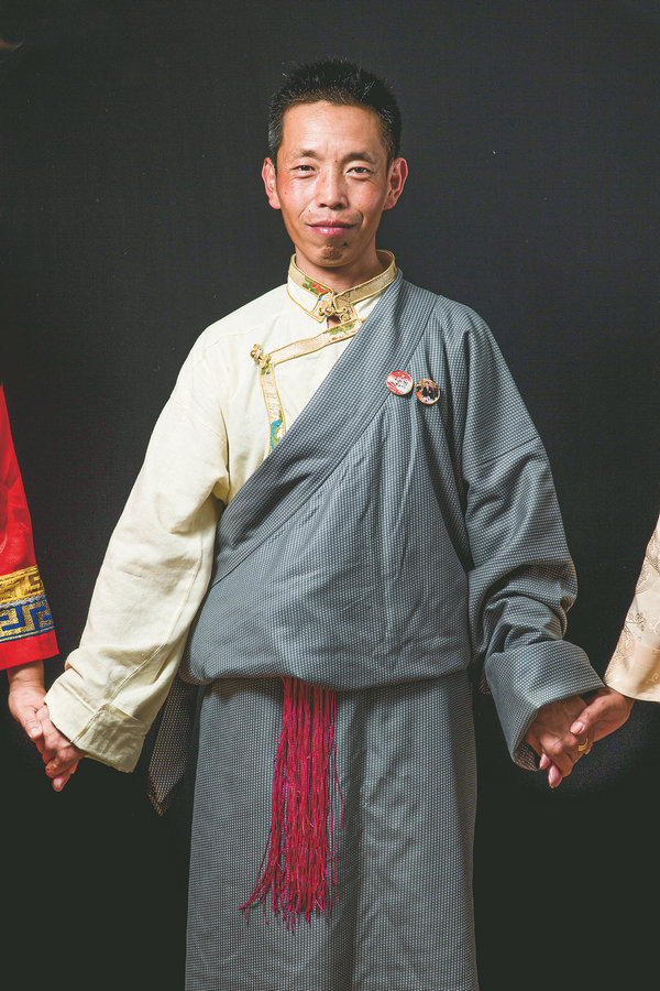 宋玉剛穿著藏族服飾(2015年9月30日攝)。新華社記者金立旺攝