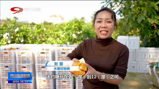 水果經(jīng)銷商 劉麗:大約糖分在11(度)到12(度)之間,顏色的話,我們是在達夠了八成紅以上才采摘的,這個貨我們預計發(fā)往安徽省去銷售。