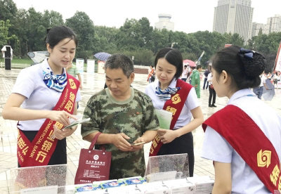 ↑在數(shù)字化浪潮下,數(shù)字金融在服務民生、促進經(jīng)濟發(fā)展等方面發(fā)揮著越來越重要的作用。圖為工作人員在向市民普及數(shù)字金融知識,服務市民需求。