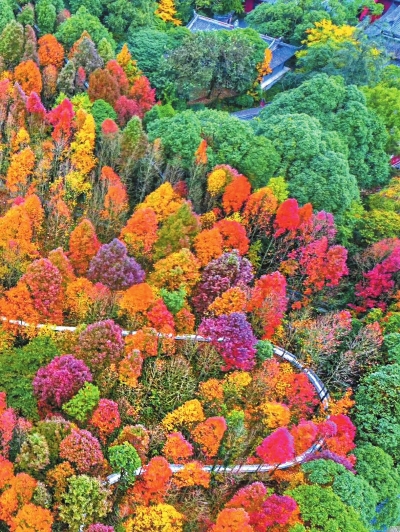 秋天的竇圌山如一幅被打亂的油畫調色盤,肆意上色,描繪出獨屬于秋天的絢爛。最佳觀賞期是10月下旬-11月中旬。