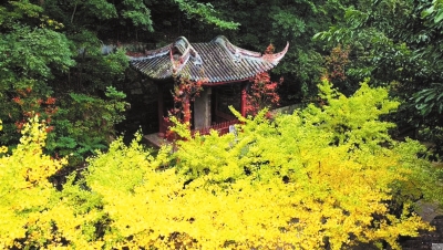 秋季絢爛多姿,翠綠的常青樹與艷麗的紅葉穿插生長,濃烈的色彩仿佛秋姑娘打翻的顏料瓶。