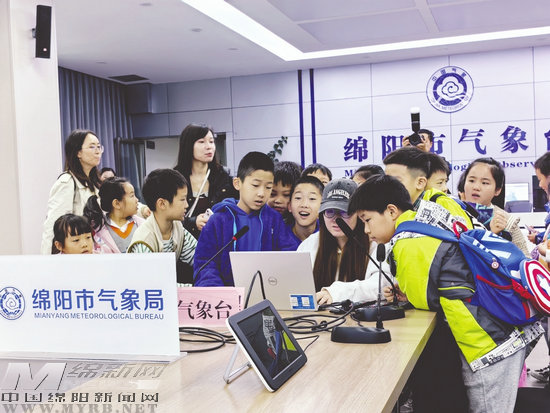 孩子們聽工作人員講解天氣預(yù)報(bào)知識(shí)