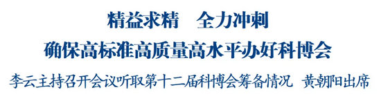在聽取科博會籌備情況匯報(bào)后,李云指出,本屆科博會是首次全面實(shí)行市場化辦會。自籌備工作啟動以來,各主辦單位、指導(dǎo)單位、承辦單位主動作為、通力協(xié)作,整體工作推進(jìn)有力有序有效。要始終堅(jiān)持市場運(yùn)作、政府支持、社會參與的辦會模式,緊盯籌備工作時(shí)間進(jìn)度,及時(shí)協(xié)調(diào)解決籌備過程中出現(xiàn)的困難和問題,全力以赴抓好各環(huán)節(jié)、各板塊目標(biāo)任務(wù)落實(shí),努力把本屆科博會辦得更加精彩、更有特色、更富實(shí)效。
