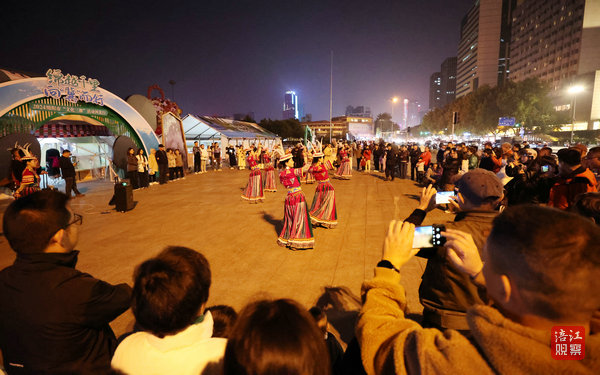 夜幕下的石家莊文化廣場(chǎng)同樣熱鬧非凡。淳樸的歌聲、震撼的鼓點(diǎn),奏出民族文化體驗(yàn)、傳播、傳承的優(yōu)美曲風(fēng)?;鹧媾噬瑹崆槊褡甯栉?、民族鼓樂、集體鍋莊舞等表演接連進(jìn)行,讓觀眾沉醉于濃厚的民族風(fēng)情之中。大家手拉手圍著篝火邊唱邊跳,用歌聲傾訴熾熱情懷,以舞蹈展現(xiàn)精神寄托,歡笑之間,兩地市民之間的距離越來越近,情感越來越深!